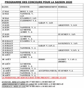 Calendrier des concours du groupement de Valenciennes et de la société L’entente du Hainaut