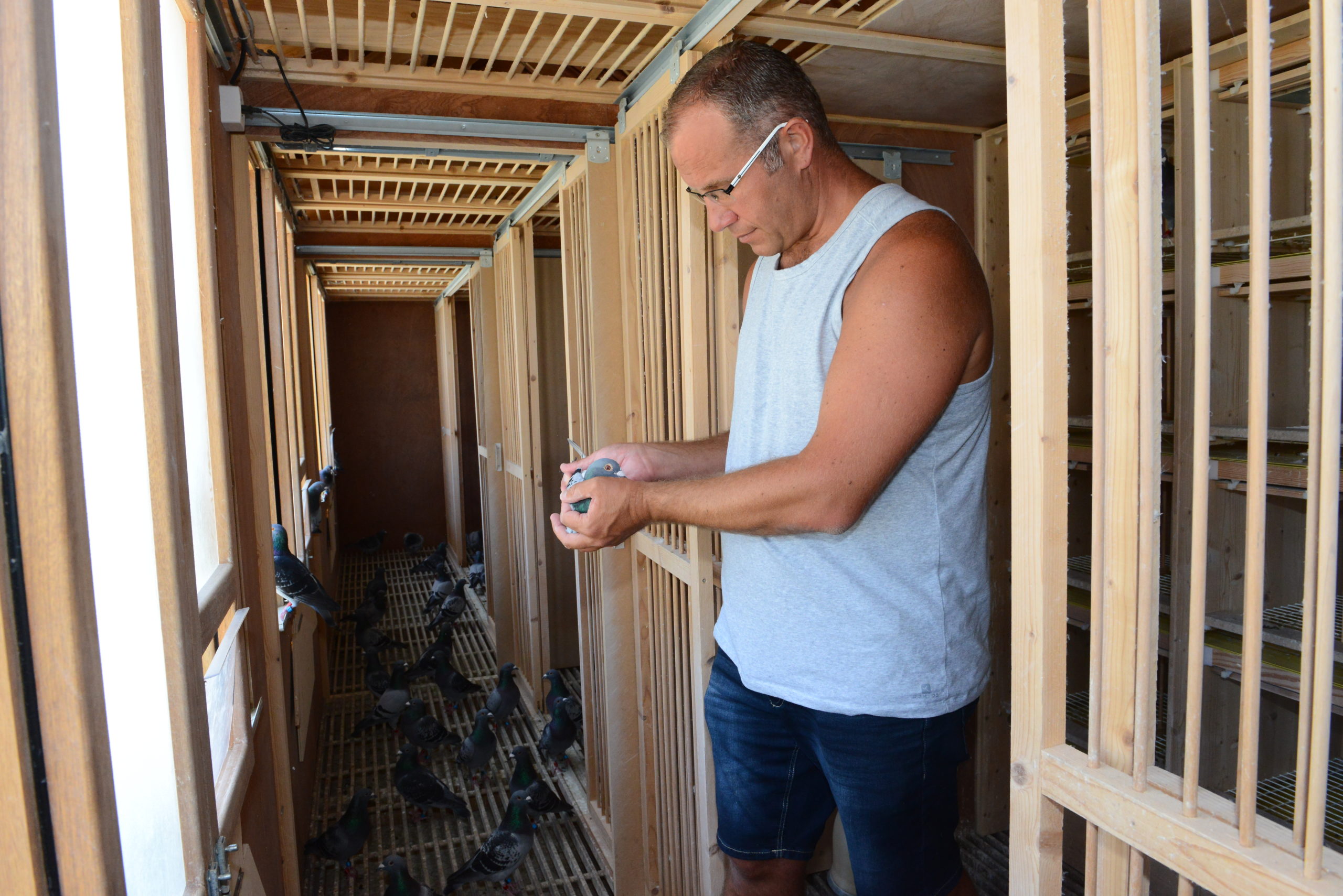 Didier est colombophile depuis l’âge de 13 ans, son père Serge était déjà un colombophile reconnu. Aujourd’hui encore, il vient encore donner un coup de main au fiston, pour gérer cette gigantesque colonie. « Je suis né dedans » me dit- il.
