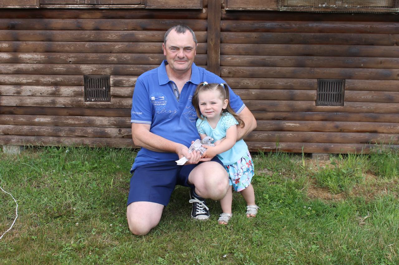 La colombophilie, il est né dedans. Il a joué avec son père puis a pris sa propre licence en 1981. Il initie sa petite fille, Elise, (sur la photo). Elle est déjà très à l’aise dans les pigeonniers de son papy et les pigeons la reconnaissent.