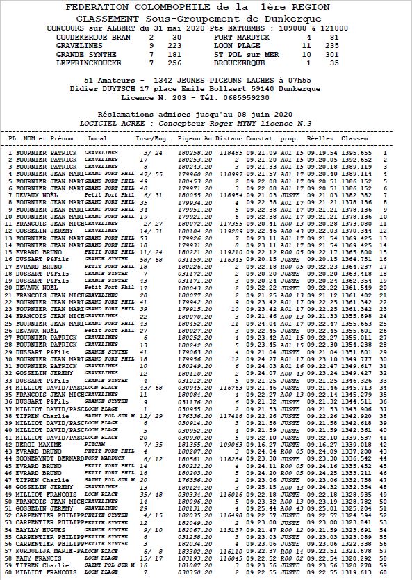 Publié le02/06/2020Résultat d’Albert du 31-05 Groupement de Dunkerque Albert Jeunes Albert Vieux PartagezTweetezPartagez