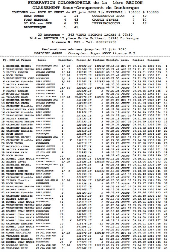 Publié le11/06/2020Résultat du 7/06 Groupement de Dunkerque Montoire Vieux Montoire 1 An Roye : Roye Vieux Roye Jeunes PartagezTweetezPartagez