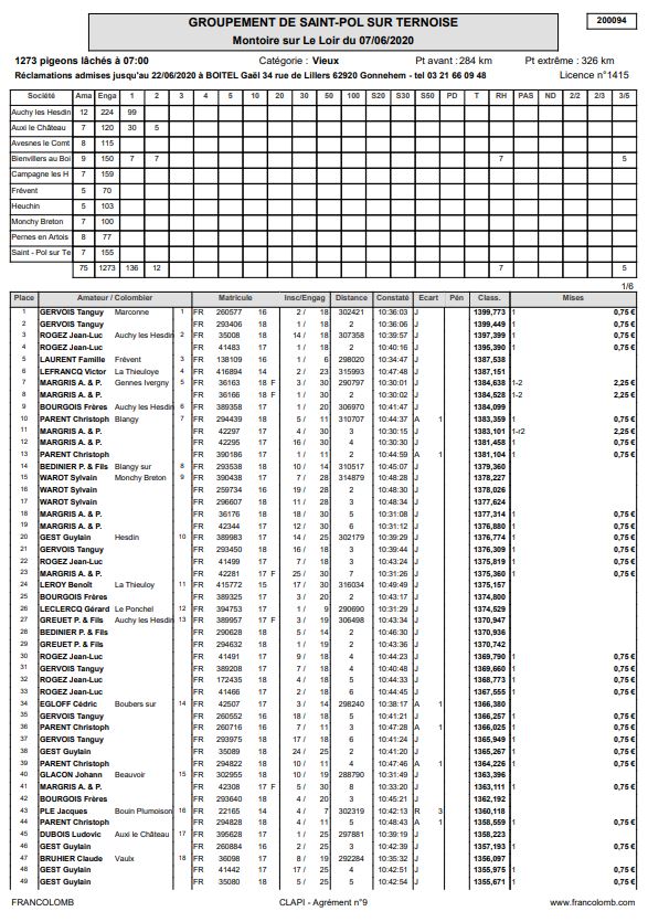 Publié le11/06/2020Resultat du 7/06 Groupement de St Pol Sur Ternoise Montoire Vieux Montoire 1 An Montoire Femelles PartagezTweetezPartagez