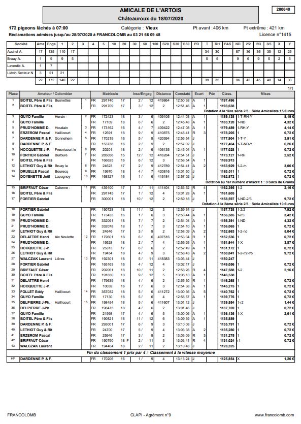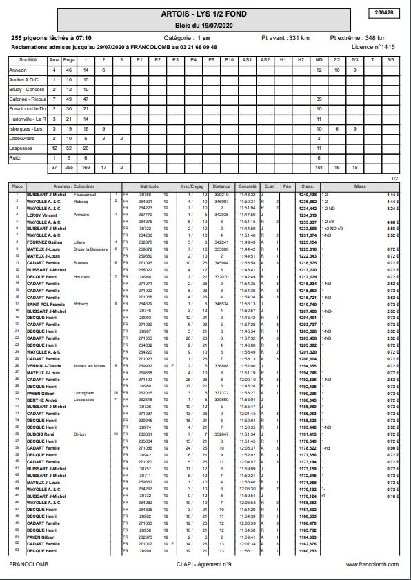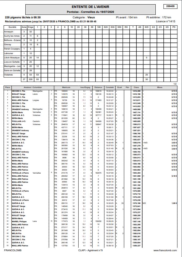 Publié le22/07/2020Résultat du 18 et 19-07 Groupement de Béthune Artois Lys Blois 1An Artois Lys Blois Vieux Artois Lys Blois Jeunes Blois Femelles Pontoise Vieux Pontoise 1An Pontoise Jeunes Entente de L’avenir : Pontoise Vieux Pontoise 1An Pontoise Jeunes Pontoise Femelles Amicale Artois : Chateauroux 1An Chateauroux Jeunes PartagezTweetezPartagez