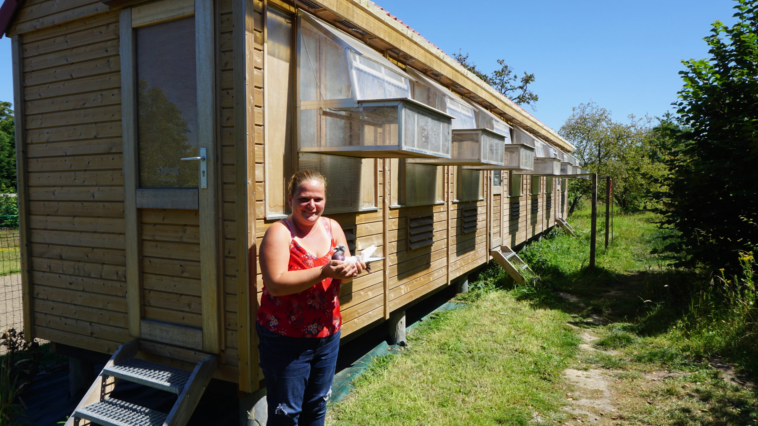 Melissa a grandi avec les pigeons, son grand père était colombophile puis son oncle, plus tard elle rencontrera son compagnon, Florian Ircio, lui aussi est colombophile. Elle décide alors de prendre sa licence en 2019 et installe un magnifique pigeonnier dans son jardin à Halluin. Dans sa rue, vie un autre colombophile, et pas n’importe lequel : George Herman Van Dist ! Imaginez un peu la scène, les deux pigeonniers sont à seulement quelques mètres de distances « Souvent on se tient au courant des arrivés si on joue le même concours, il n’y a qu’à crier pas besoin de téléphone » explique en souriant Mélissa. Avoir pour lièvre Georges Herman , le champion de France, n’est pas chose facile, mais ce n’est vraiment pas un souci pour elle, son expérience, sa passion pour les pigeons ont fait d’elle une véritable championne.