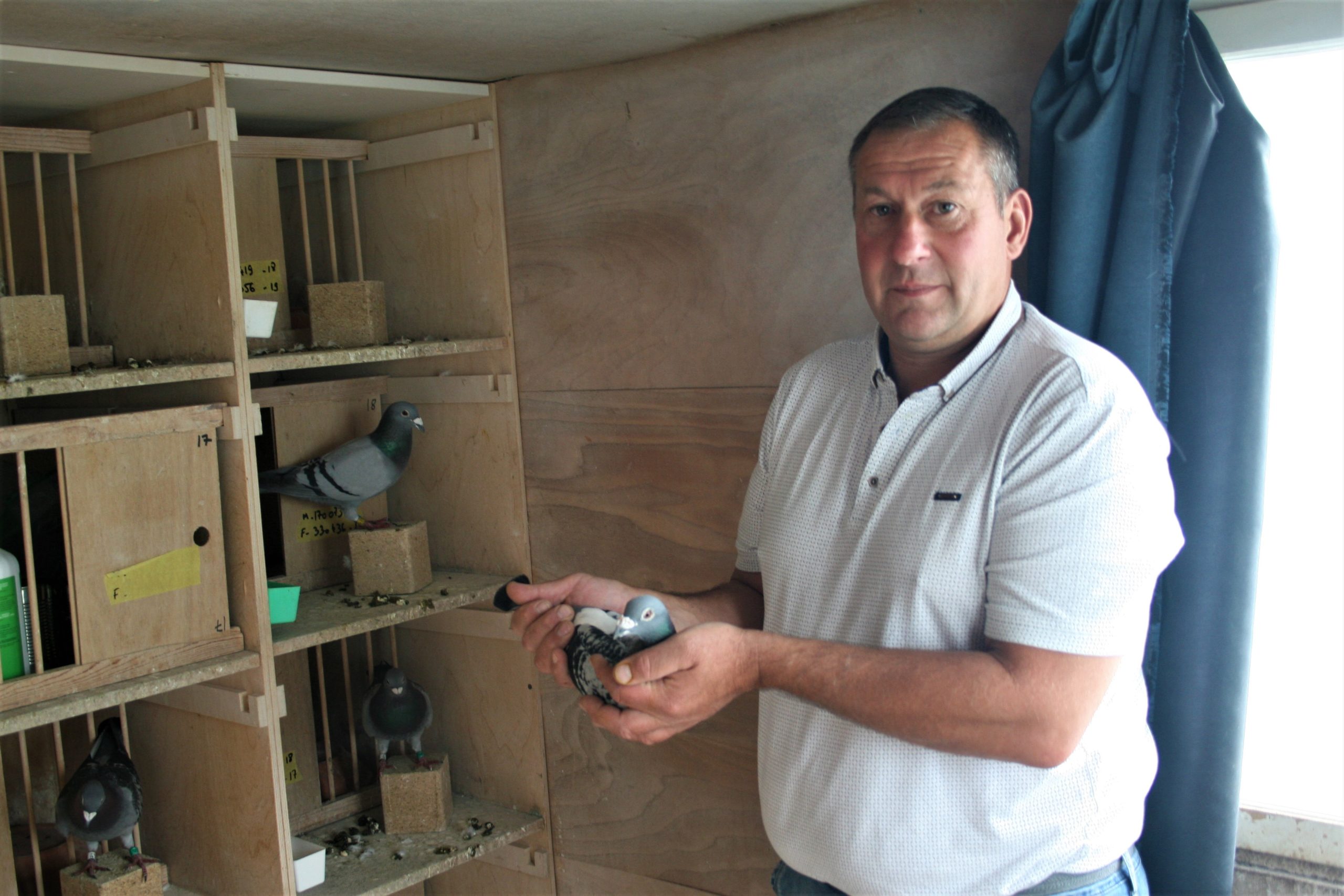 Christophe Penel, 49 ans, habite Gonnehem, il a commencé à jouer à pigeon à l’age de 15 ans, sa passion : les joutes internationales, c’est pour ça qu’il joue un peu les concours fédéraux qui est un passage obligé pour mettre en condition les pigeons avant les marathons du ciel.