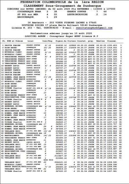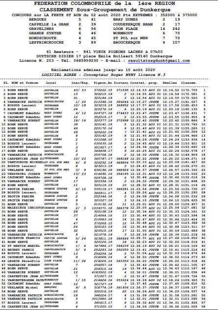 Publié le04/08/2020Résultat du 1 et 2-08 Groupement de Dunkerque Boves Vieux Boves Jeunes La Ferté St Aubin Vieux La Ferté St Aubin 1An La Ferté St Aubin Jeunes PartagezTweetezPartagez