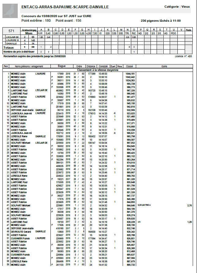 Résultat du 15 et 16-08