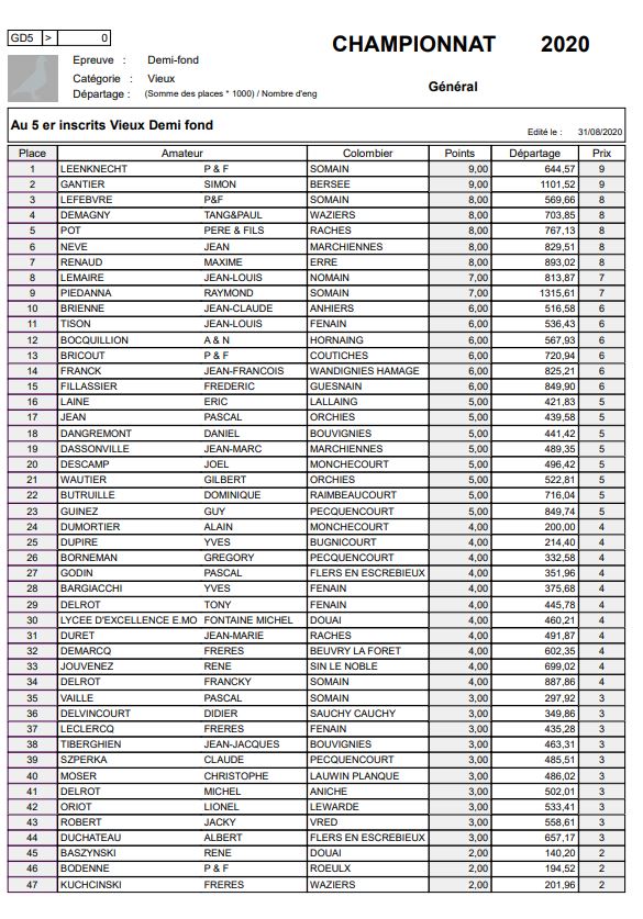 Championnat Demi Fond Jeunes 5 1er Inscrit