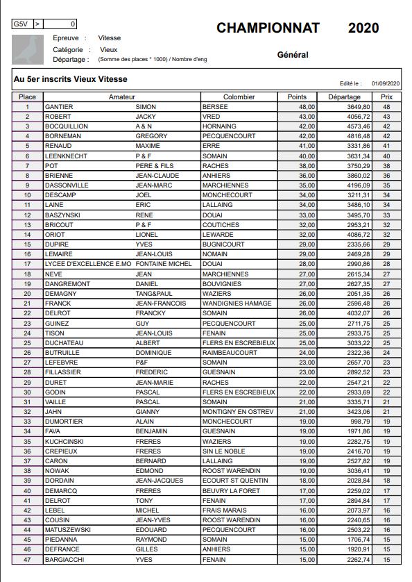Championnat Vitesse Jeunes 5 1er Inscrits