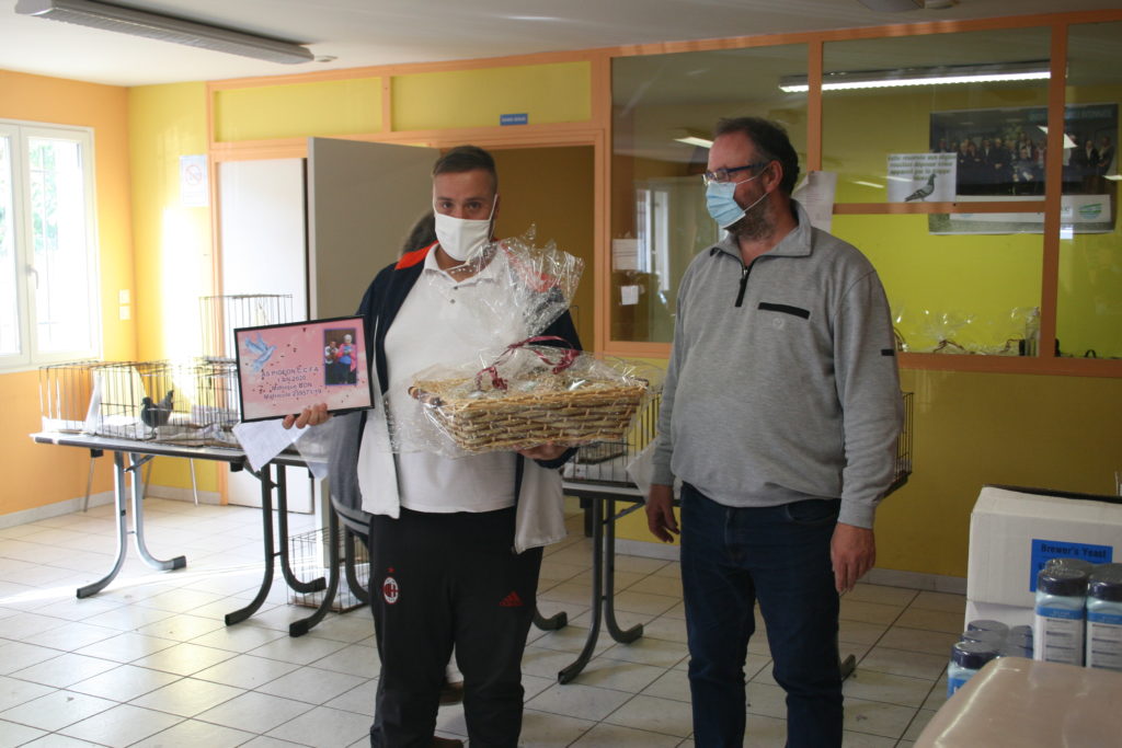 Les épouses, membres indispensables au bon fonctionnement du club, ont été récompensées par un bouquet de fleurs pour leur investissement lors des concours internationaux en avec la délicate tâche de la prise des appelslors de l’annonce de l’arrivée des pigeons ».