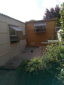 Le colombier se trouve dans le jardin. Une partie est en fibrociment et bois, le reste étant en bois, le tout formant un « U ». A l’avant se trouve un jardin composé d’herbes de Provence, plusieurs variétés de Thym, du Romarin, de la Lavande, du Laurier sauce … Il s’y trouve une grande baignoire et un poste de guet permettant de voir à des kilomètres à la ronde, un vrai petit paradis pour colombophile.