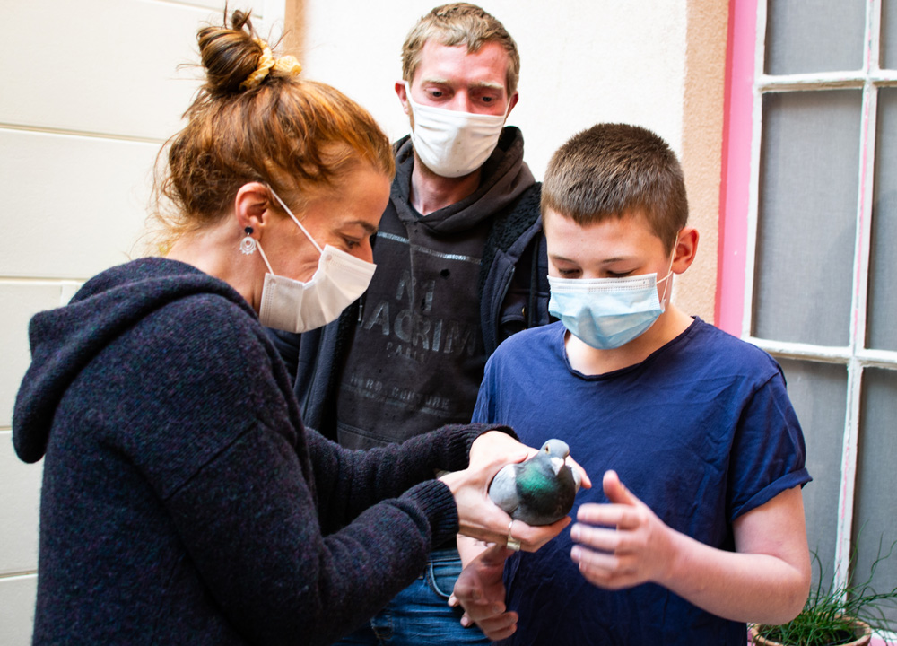 Il est 18 heures, ça sonne à la porte. C’est Benjamin, avec son papa Cédric. Le masque du petit garçon donne plus d’éclat encore aux étoiles dans ses yeux lorsqu’il revoit son animal. Touchant. Colombophile depuis un an, il est heureux de revoir son «préféré, c’est mon plus beau», livre l’ado. «Il est d’une couleur bleu sale, c’est le terme», sourit le père, Cédric, en découvrant la cabane. «C’est bien ce que vous avez fait…» Il prend Bloom dans ses mains. «Il est maigre en dessous, il a dû voyager très loin. On peut imaginer qu’il soit allé en Angleterre! Mais au niveau du cou, on voit que vous l’avez nourri. D’ici quinze jours, il sera bien, je vous enverrai des photos.» Sa famille a adopté le prénom Bloom, dont elle aime la signification. Il paraît qu’il n’est pas impossible que lors d’un prochain voyage, Bloom survole Wimereux et passe faire coucou.
