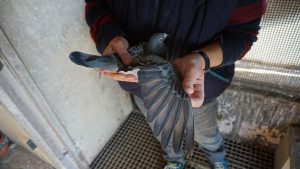 La priorité est donnée à la résistance naturelle du pigeon « depuis quelques années maintenant nous sélectionnons énormément là-dessus… Si un jeune grandit mal, s’il y a des fientes liquides au plateau ou si un jeune s’arrête de voler au bout de cinq minutes alors il est écarté. Depuis que nous procédons ainsi il y a beaucoup moins de problème de santé au pigeonnier. Et le fait d’écarter tout de suite les pigeons qui volent moins que les autres a eu un effet sur les volées quotidiennes, elles sont beaucoup plus longues et plus intenses. »