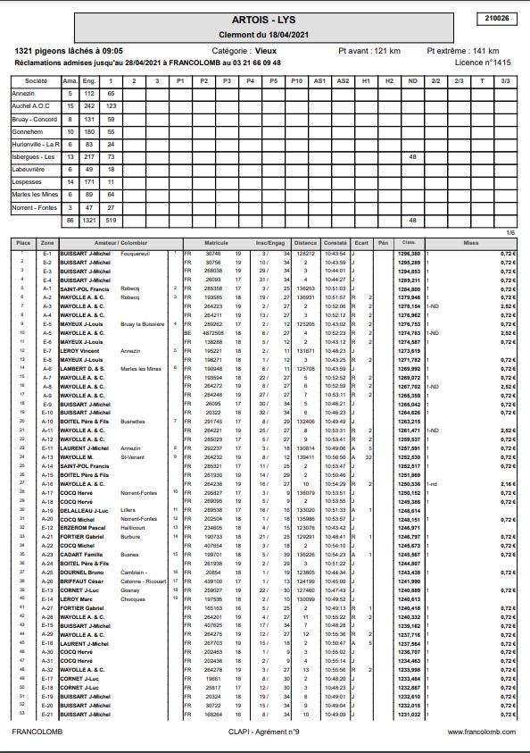 Publié le20/04/2021Résultat du 18-04 Groupement BéthuneArtois Lys : Clermont Vieux Artois Lys Clermont Artois Lys 1An Résistants Bassin Minier : Breteuil Vieux Breteuil 1An Breteuil Femelles PartagezTweetezPartagez