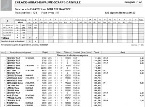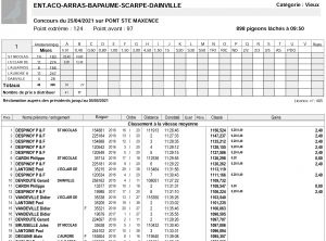 898 vieux pigeons, 20 enlogés : 1, 2, 3, 4, 5, 7, 9, 12, 55, 56,123, 130 et 151.