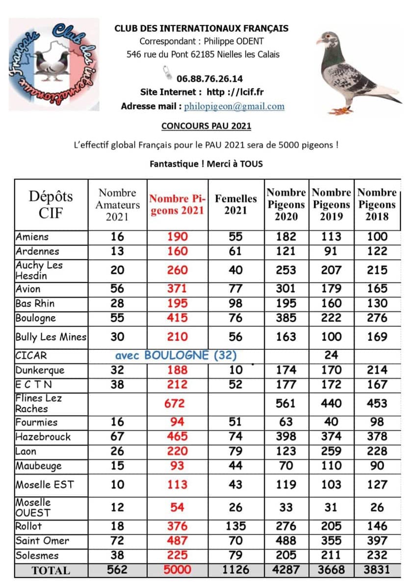 La mise en valeur via les journaux, et sites Internet de nos champions et de leurs pigeons contribue aussi à l’engouement pour les joutes internationales. Ces éléments démontrent qu’avec la volonté de bien faire, de communiquer la colombophilie a un avenir ! Merci à tous les bénévoles qui ont œuvré ce lundi soir pour arriver à ce chiffre à la fois incroyable et très encourageant: 5000 pigeons français à Pau !