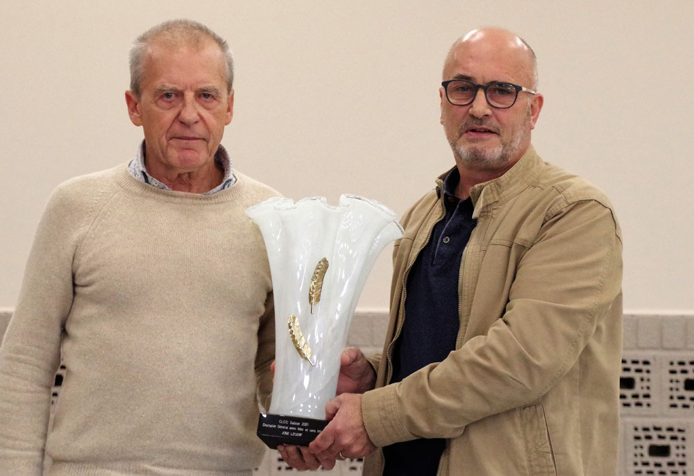 Chaque membre qui a remporté un concours se voit gratifié d’un sac de grains. Et c’est Bruno Loyer qui remporte le plus de sacs. Enfin les 19 meilleurs reçoivent une carte cadeau, une manière de récompenser l’investissement des colombophiles. Après une mise à l’honneur des bénévoles, les champions sont à leur tour récompensés. Premier du championnat général avec et sans inter : José Lecerf.