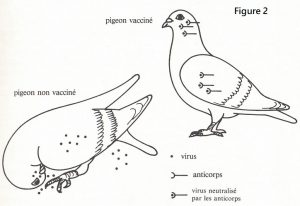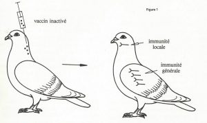 Lors de notre collaboration avec l’industrie pharmaceutique pour la mise au point d’un vaccin destiné aux pigeons voyageurs, les objectifs à atteindre étaient avec une seule injection de protéger les pigeons le plus longtemps possible, d’avoir une parfaite tolérance du vaccin et pas d’effets secondaires.
