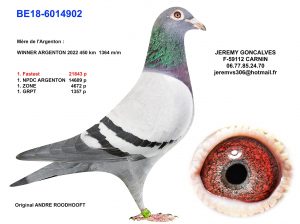 Samedi 21 mai, 21 840 pigeons s’envolent depuis Argenton pour le premier concours fédéral de la saison. Jérémy Goncalves de Carnin fait le premier prix avec le Fr 344810-19 qui a volé à 1363.18 m/min. Une belle récompense pour la petite colonie.