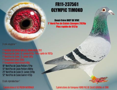 Comme vous le savez, Pigeon-Master propose actuellement un lot de pigeons made in Margris issus d’une collection exceptionnelle.  L’occasion de revenir sur le pigeon phare de la colonie de Gennes-Ivergny : Timoko. Autrement dit, une entité exceptionnelle qui a permis à Alexandre et Paul Margris d’écrire l’histoire de la colombophilie Française  !