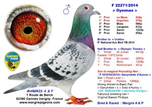 Bien que l’on aurait pu choisir l’intitulé « Alexandre Margris, sa vie, son œuvre… » pour cet article, la remarquable histoire colombophile de la colonie Margris A & P est en marche et ne nous incite pas à le considérer comme une conclusion de carrière, mais plutôt comme une étape clé pour immortaliser leur saison 2023 exceptionnelle, dans les résultats, mais pleine de désinvolture dans la manière. »