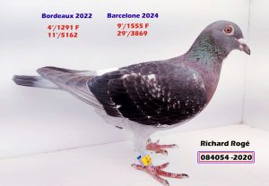 - Richard Rogé avec sa FR-20-84054, provisoirement 28° Nat Barcelone 3869, pigeonne déjà primée 11° Nat Barcelone 5162 p Bordeaux 22