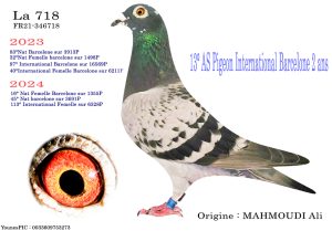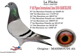 Bien que la déception soit compréhensible, Ali a de quoi être fier : trois de ses pigeons ont été constatés le soir même lors du concours de Barcelone. La Flèche a confirmé son exploit de la saison passée en rentrant chez elle le soir pour retrouver son jeune de 8 jours. Elle a été constatée à 21 h 00. Cette nouvelle performance la propulse au 5ᵉ rang du classement Pipa Ranking, regroupant les meilleurs pigeons européens sur les deux dernières éditions de l’épreuve catalane.