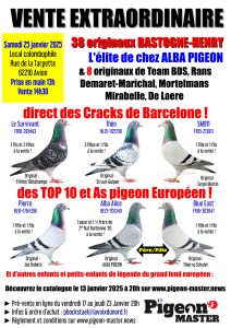 Programme des ventes à venir en 2025 sur Pigeon-Master