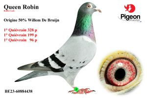 Sa lignée brille aujourd’hui aux concours, sa fille la 628/17 est la grand-mère des deux meilleurs vieux pigeons 6084430/23, 7e As pigeon et 040/22, de 2e As pigeon Quiévrain vieux verbond.